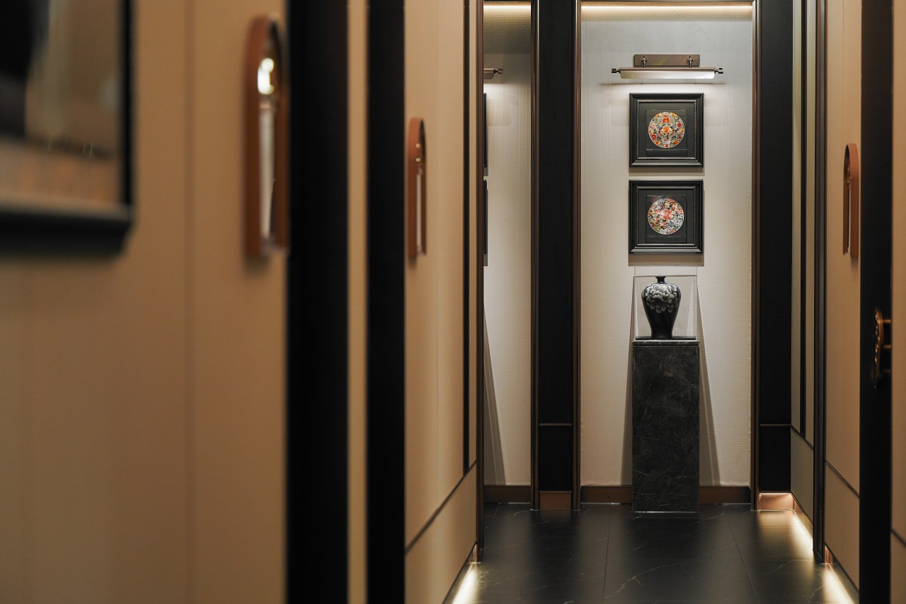 专属电梯间,精心雕琢的迎客松以其遒劲的枝干和盎然的生机,作为这片天地的第一道礼序,彰显着中原待客之道的热忱与厚重。