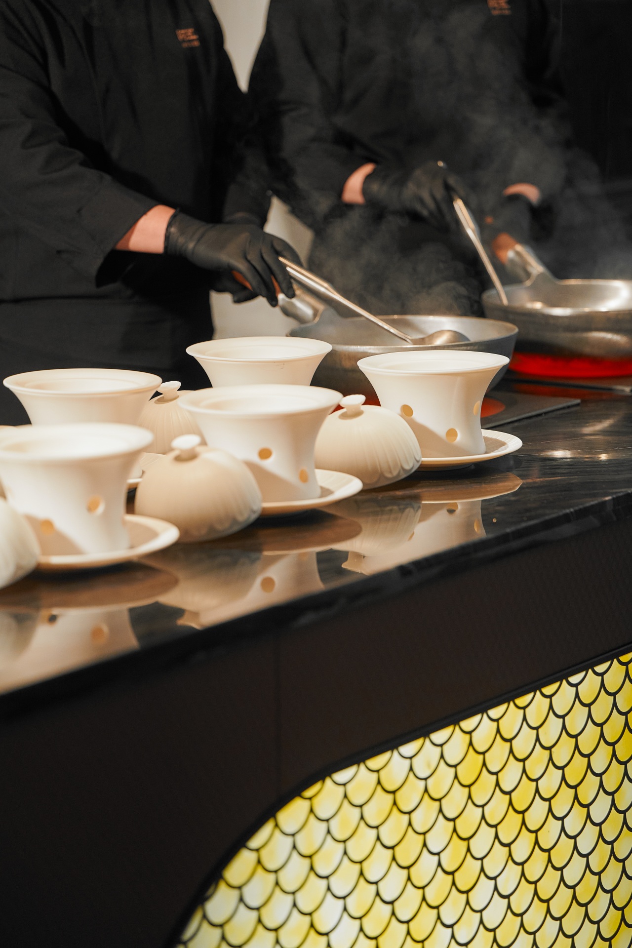 上有七星,下有七宝,大师工作室更将「文化」与「艺术」贯穿整个空间,茶台处一抹绿意自带优雅腔调,厨师在此现场创作,每一味,皆藏匠心。