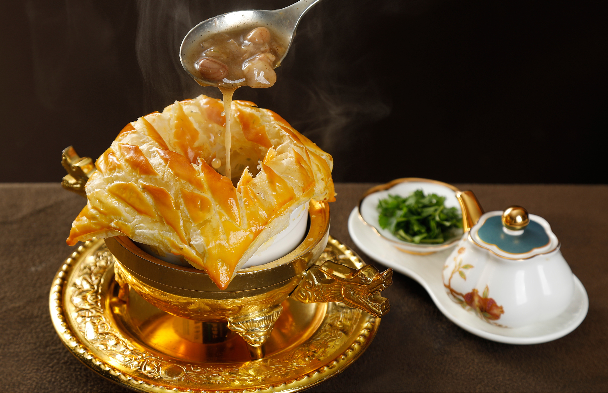 河南必点“胡辣汤”也玩出了新花样,酥皮八珍胡辣汤甄选八种优质食材,酥皮烤至金黄焦香、脆到掉渣,中西结合,风味独特。