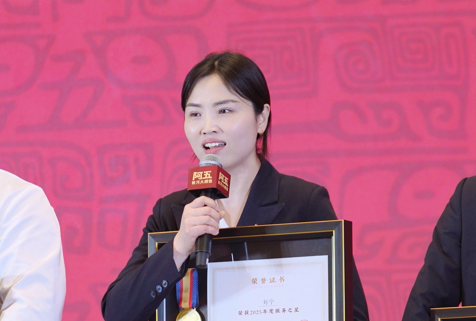 她时刻以客户满意为宗旨,用心服务好每一位顾客,多次受到客户表扬;她团结同事,从不计较个人得失;2025年阿五岗位技能比武大赛“鱼头酒讲解”取得优异成绩。